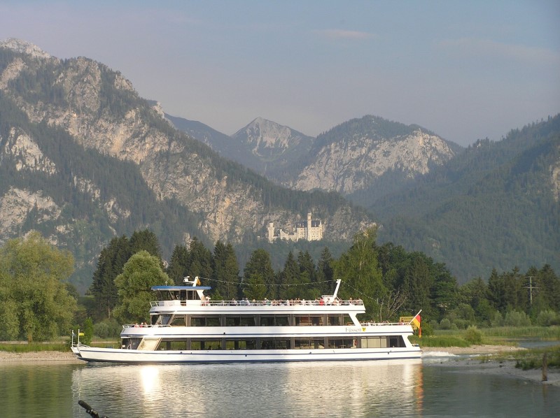 Schloss Neuschwanstein, touristischer Massenmagnet. Das „Märchenschloss von König Ludwig II kann nur mit Führung besichtigt werden. Wenn man die Eintrittskarten kauft, bekommt man eine Startzeit der Führung genannt (Wartezeit in der Regel zwei bis drei Stunden). Überall nur gebührenpflichtige Parkplätze (5,00€/8h, Stand 2010).