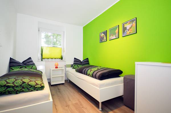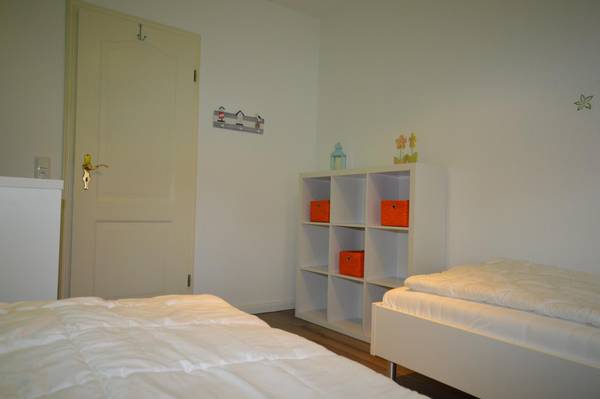 Schlafzimmer 2 ist mit zwei Einzelbetten, Premium-Matratzen , Kommode und großem Regal ausgestattet. Es ist kinderfreundlich gestaltet .