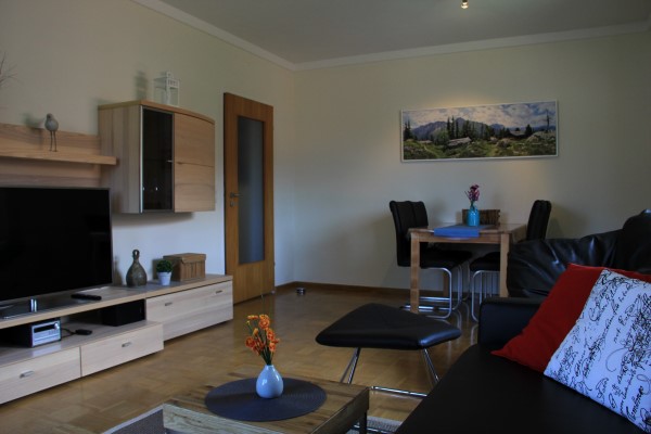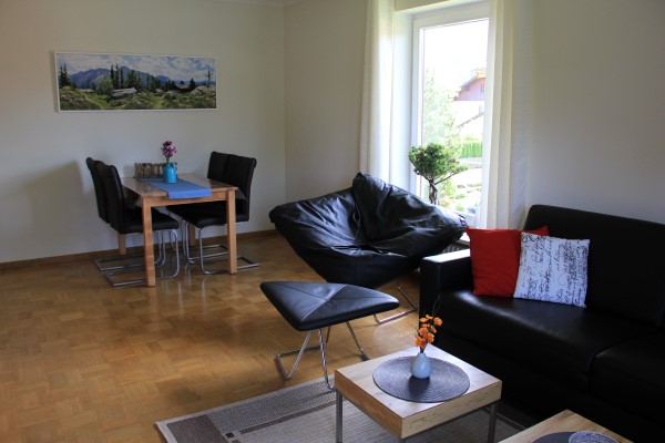 Im lichtdurchfluteten Wohnzimmer erwartet Sie eine moderne und elegante Essgruppe aus Echtleder . Das bequeme Sofa, ebenfalls mit hochwertigem Leder bezogen, kann auf Anfrage als Ausweichmöglichkeit zum Luxus-Bett für schnarchende Gäste umfunktioniert werden. Ein Sessel mit Fusshocker ,designed von Roland Schmidt ,sorgt ebenso für bequemes Sitzen. Der hochauflösende 50"UHD-Fernseher vom neusten Stand sowie ein CD-Radio sorgen für gute Unterhaltung in den Abendstunden oder Zwischendurch. Schnelles Internet ist selbstverständlich!