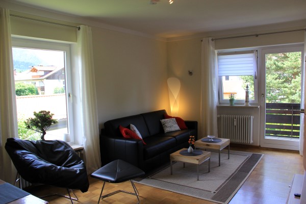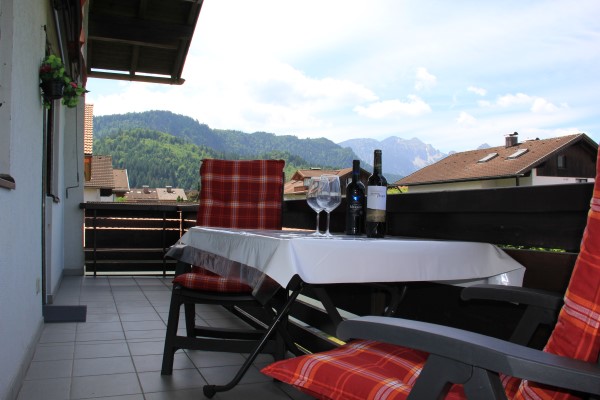 Sowohl vom Wohn- als auch vom Schlafzimmer aus gelangt man auf den riesigen Balkon und kann ein fantastisches Berg-Panorama bei einem Glas Wein genießen.Zwei Markisen sorgen für angenehme Beschattung auf dem Balkon.